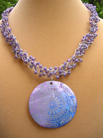 This necklace is crocheted on gold wire using a mix of beads in chartreuse, gold, and antique gold. There are different sizes of gold and green seed beads plus bugle beads in each color. I added a round filigree pendant and a "fringy" dangle. I really like this one, but of course, this shade of green is one of my favorites. The bugle beads and little gold lined beads really sparkle. I don't do too much in gold even though I prefer it because silver seems to be more popular, especially with the younger crowd.~Today's Quote~